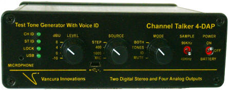 - 8 AES channels with 1000Hz tones and voice